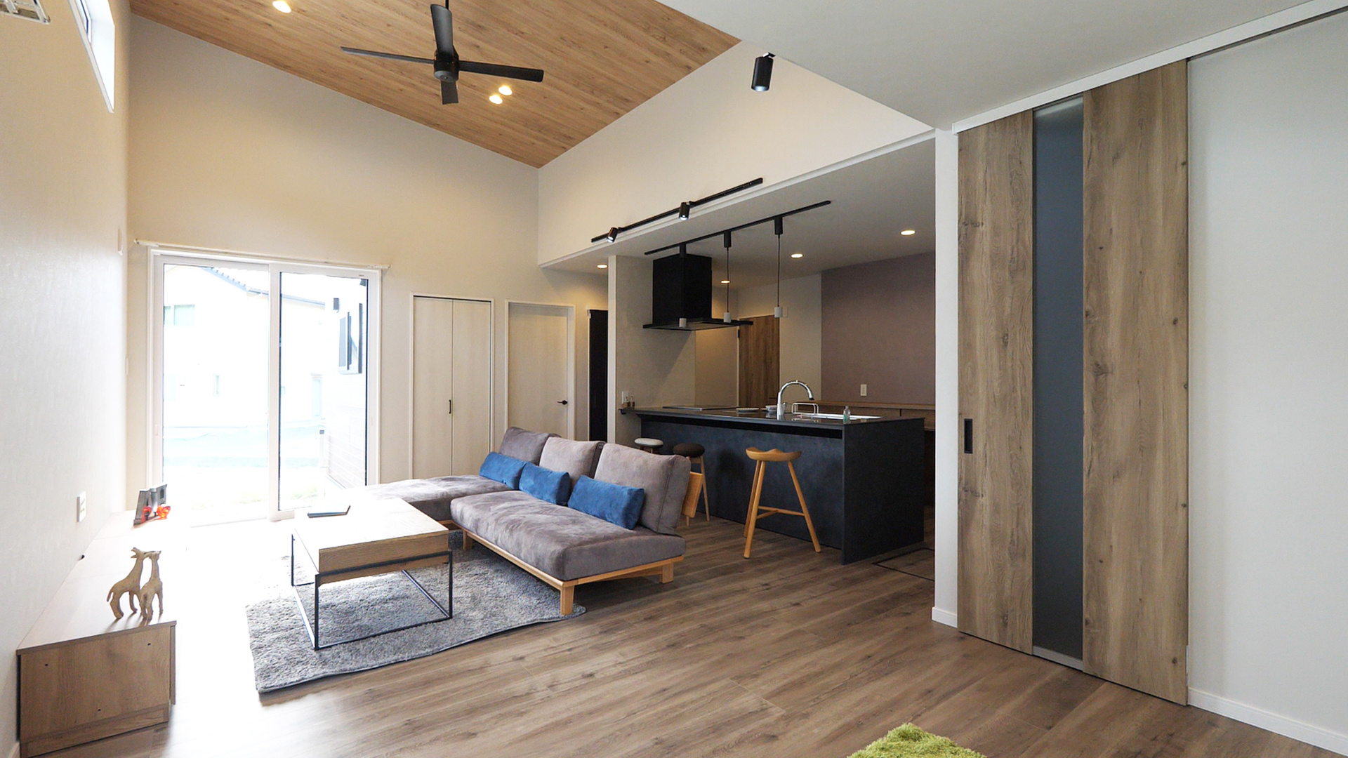 20帖のLDKと勾配天井で平屋とは思えない開放感を実現