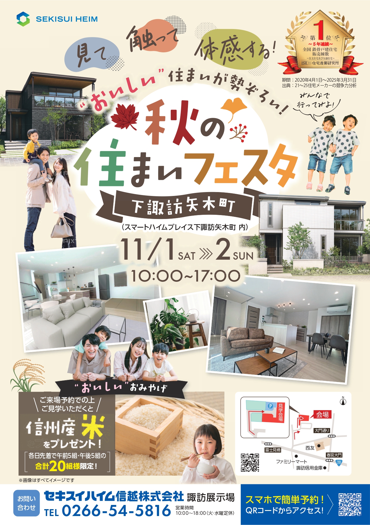 日程に変更が有る場合もございますので、詳しくはセキスイハイム信越様ホームページの見学会情報をご確認ください。
